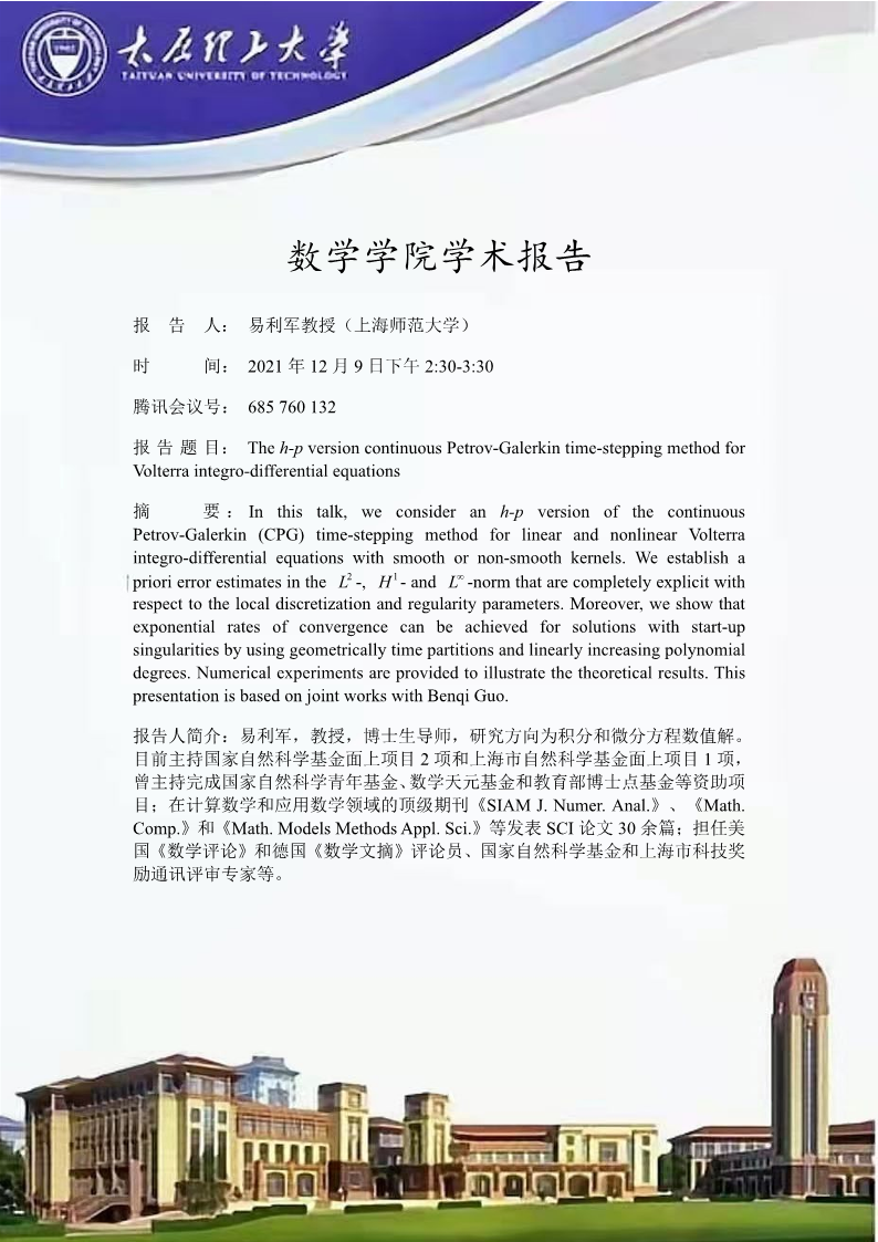英国365集团公司官网将于12月9日邀请上海师范大学易利军教授作报告