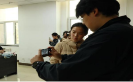 理论课程结束后,现场即刻转化为生动的实操课堂。在李泽远的指导下,同学们利用手机和大疆等设备,模拟了员工活动中的常见场景进行针对性训练。比如如何在台下避免前排观众或物品的遮挡。李泽远现场演示了解决方案:通过适当提升拍摄站位、使用变焦功能拉近画面,或寻找前排座位之间的空隙进行拍摄,确保在任何会场环境下都能捕捉到完整、干净的画面。