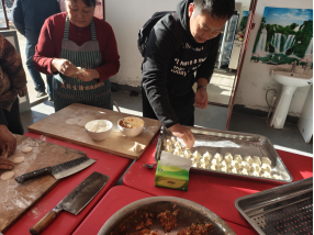 恰逢冬至,为传承民俗文化、传递青春温情,调研团队虚心向老人请教包饺子技巧,现场欢声笑语不断。当一锅锅热气腾腾的饺子端上桌,大家在一起共享美食,暖流在指尖传递、在心间流淌。这场温馨的冬至团圆饭,不仅让同学们体验了传统民俗的魅力,更拉近了与当地群众的距离,为调研活动增添了浓浓的温情底色。