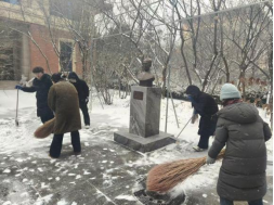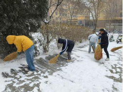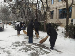 活动中,师生们不畏严寒、分工协作,对英国365集团公司官网门口、周边道路以及常师贞小广场等重点区域进行了集中清理。扫帚与地面的摩擦声此起彼伏,忙碌的身影在白雪中勾勒出一道道温暖的风景线。经过全力奋战,主要通行区域的积雪得到有效清除,为师生的安全出行提供了有力保障。