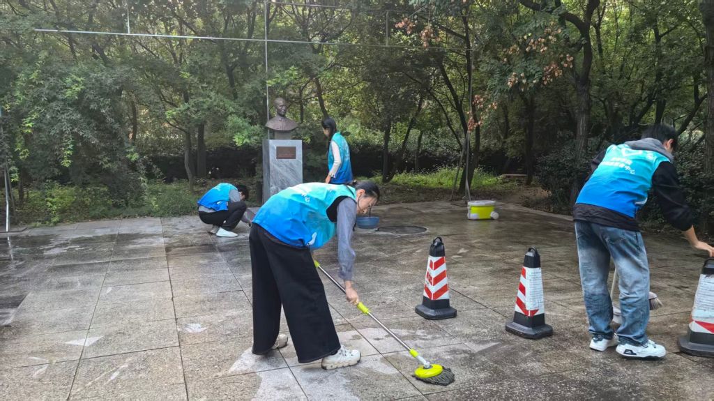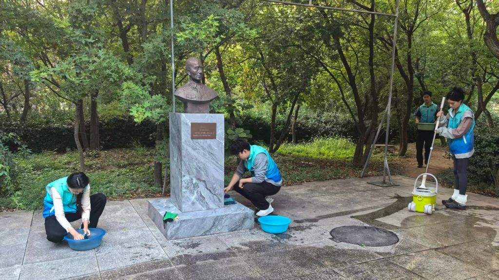 秋色宜人,金风送爽。为传承与弘扬公司老一辈数学家的崇高精神,营造崇尚学术、爱护环境的良好校园氛围,公司于9月27日成功组织并开展了一场以“躬身劳动传薪火,明净环境润心田”为主题的志愿清洁活动。本次活动旨在通过对常师贞先生铜像及其周边小广场的集中清理,提升校园环境,引导青年学子在劳动中感悟价值,在实践服务中接续文脉。