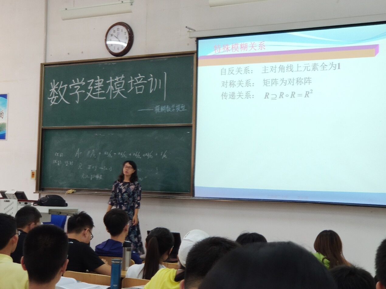 第六天的学习内容是模糊数学模型。武彩萍老师从模糊数学的基本概念,产生原因和意义再到简单的建模应用,她用风趣幽默的语言和生动贴切的例子让我们对模糊数学有了初步的了解,产生了浓厚的学习兴趣,听课的同学们都认真思考,做笔记。随后,数学建模负责老师详细讲解了关于国赛的操作流程和注意事项。