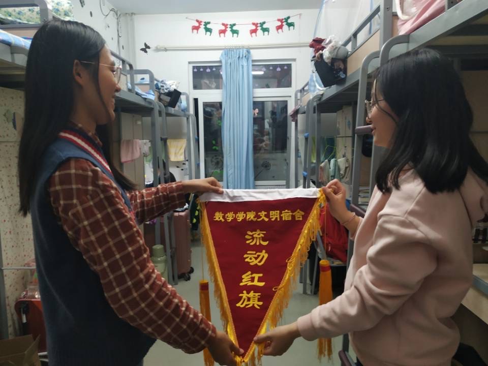 各个寝室、每位数院学子的共同努力,让流动红旗真正流动起来,在本学期的查寝工作中,被评选为榜样寝室的有女生寝室:107、108、302、305,男生寝室:308、327、315、322。“百尺竿头须进步,十方世界是全身”,在此,希望各榜样寝室继续保持现状,其他寝室迎头赶上,再接再厉。
