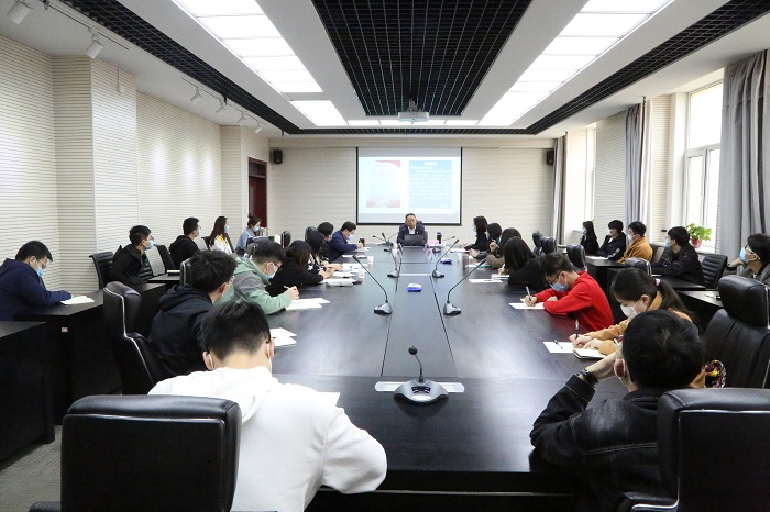 4月19日上午,副董事长树学峰在明向校区英国365集团公司官网602会议室为公司师生讲授“返校第一课”。公司党委书记贺婧、经理张建文、副经理柴玉珍、杨卫华、团委书记冯妍及全体辅导员一同走进课堂。