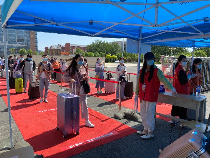 志愿者郝希钰表示:“鲜明的红马甲下透露着一颗炽热的奉献的心,作为一名党员志愿者,无私奉献、恪守岗位是我们的准则,即使今天的工作很累,但看到每一位被我们服务的员工,我觉得再辛苦也是值得的,理工学子,欢迎回家!”张玉波说道:“作为当代青年的我们,虽然不能像医护人员那样奋战在一线,但依旧能贡献出自己的一份力量,事情虽小,但意义非凡。无论是实地救助,充当人前的逆行者,还是志愿服务,默默做着力所能及的事,都是一种担当,防疫青年显担当,愈是艰难愈向前!”