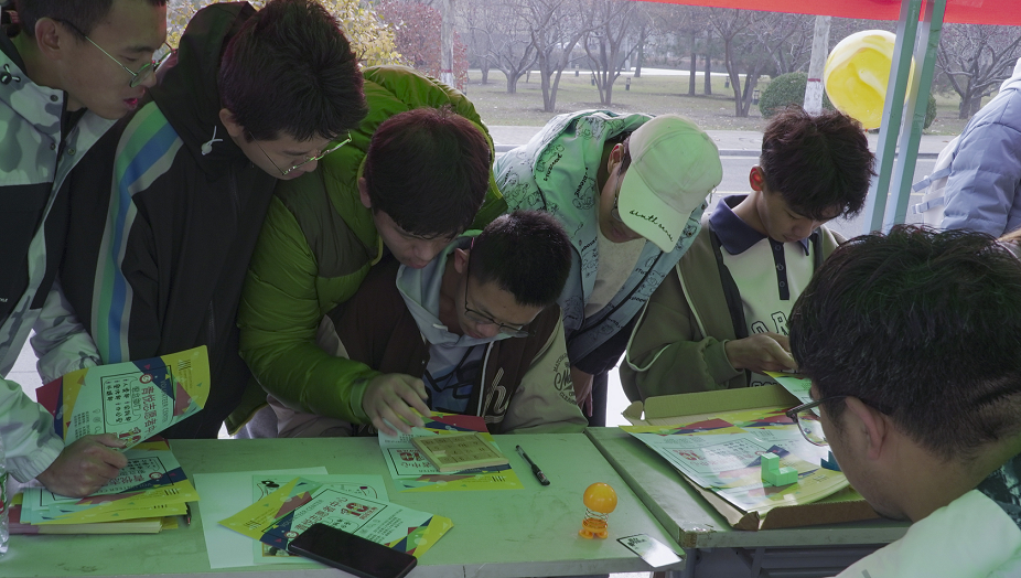 游戏区设有“数字华容道”、“汉诺塔”、“索玛立方体”等益智小游戏,吸引了大量同学前来体验,同学们在游戏中收获乐趣,志愿者还为参与的同学准备了精美小礼品,并参与十周年钉子拼图,让参与的每位同学都收获满满。