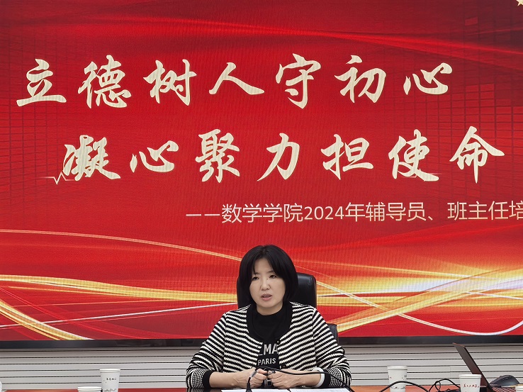 孙莉围绕“如何做一名优秀的辅导员、班主任”主题,从对工作角色的定位、工作内容、工作技能以及自我提升四方面对全体辅导员和新任班主任进行培训。她强调作为辅导员、班主任要有高度的政治觉悟,对待员工要有教育者的智慧、管理者的严谨以及心理辅导者的细腻,要用心管理班级、善于组织协调、不断提升自我,全面提高辅导员、班主任职业素质和能力。