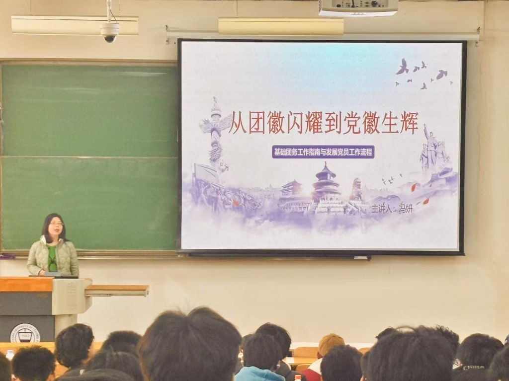 公司团委书记兼学工办主任冯妍以基础团务工作与发展党员流程为核心,从三方面进行授课:一是结合相关文件、政策讲明基层团组织的重要作用;二是详解“三会两制一课”等基础团务的工作规范;三是为同学们梳理发展党员的5个阶段25个步骤,重点介绍了推优、入党积极分子的确定和培养教育、发展对象的确定和考察等工作。她鼓励学员们在学习、生活和工作中对照优秀团员标准严格要求并努力提升自己,争取早日从团徽闪耀迈向党徽生辉的新征程。