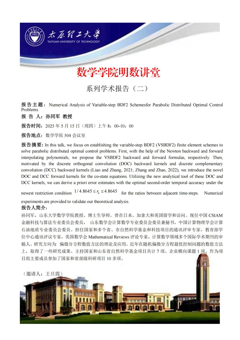 英国365集团公司官网将于5月15日邀请高夫征 、孙同军教授做学术报告