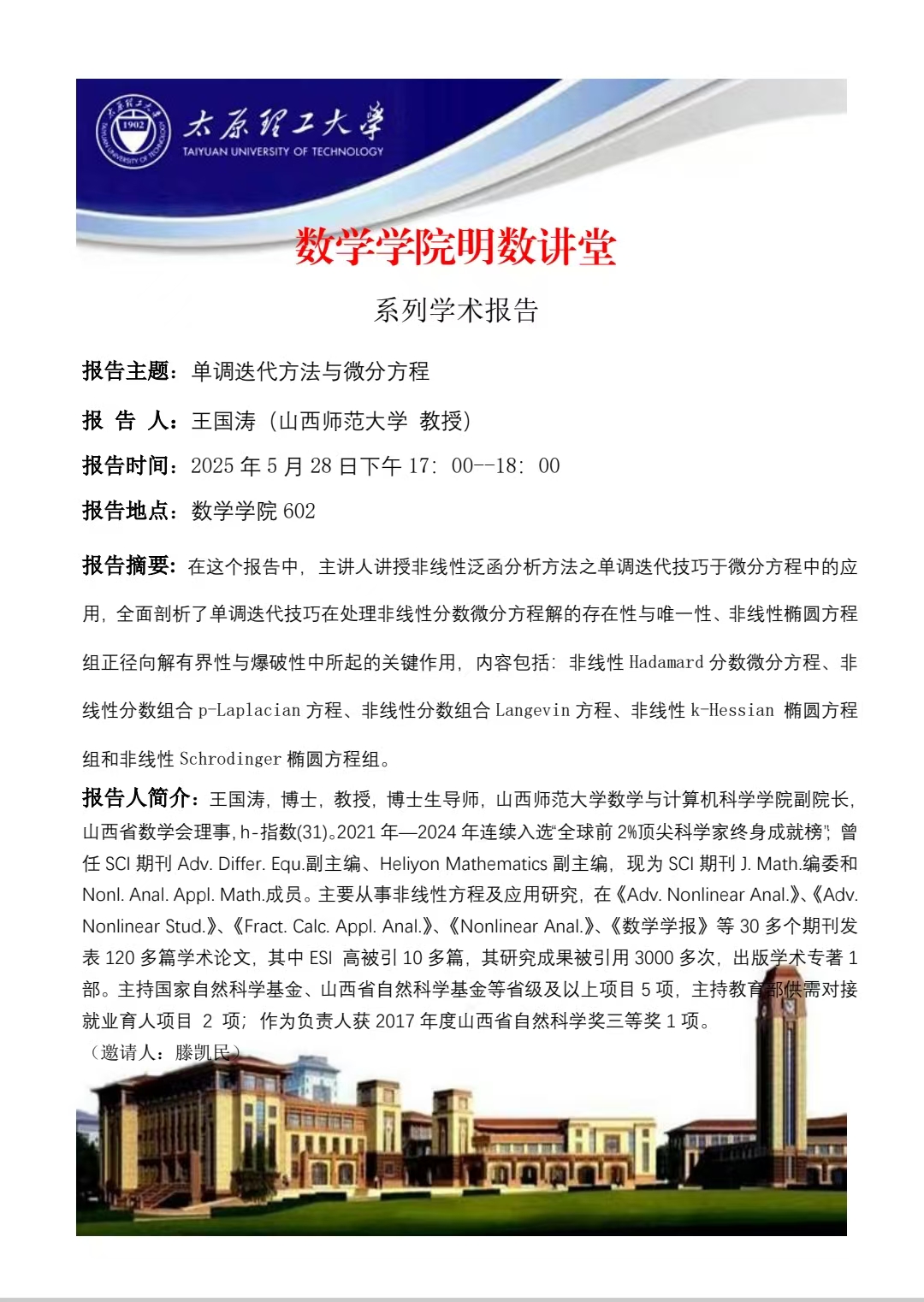 英国365集团公司官网将于5月28日邀请翟成波、王国涛、李福义教授做学术报告