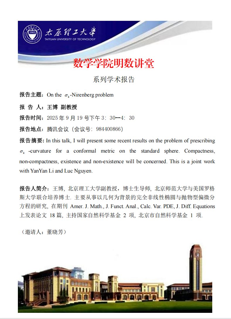 英国365集团公司官网将于9月19日邀请王博副教授做学术报告