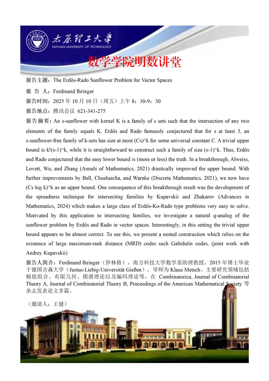 英国365集团公司官网将于10月10日邀请Ferdinand Ihringer助理教授做学术报告