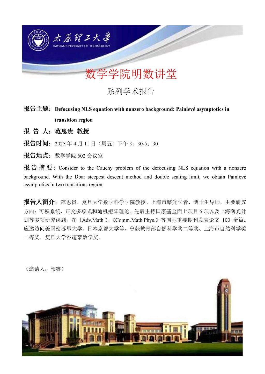 英国365集团公司官网将于4月10日邀请范恩贵教授做学术报告