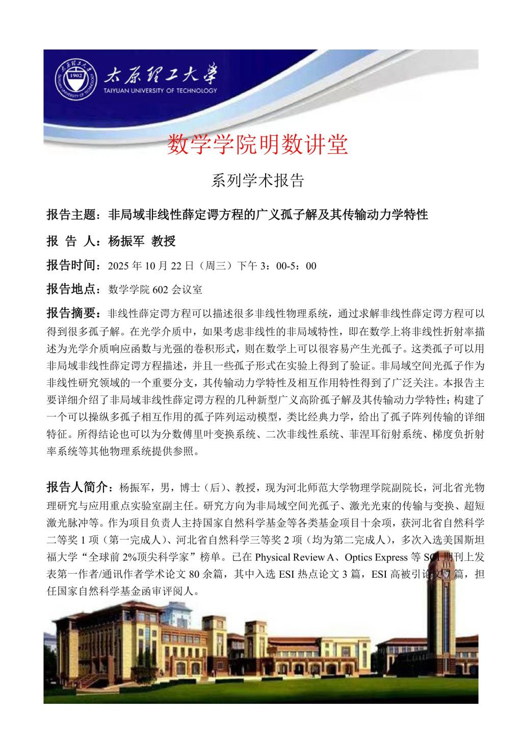 英国365集团公司官网将于10月22日邀请杨振军教授做学术报告