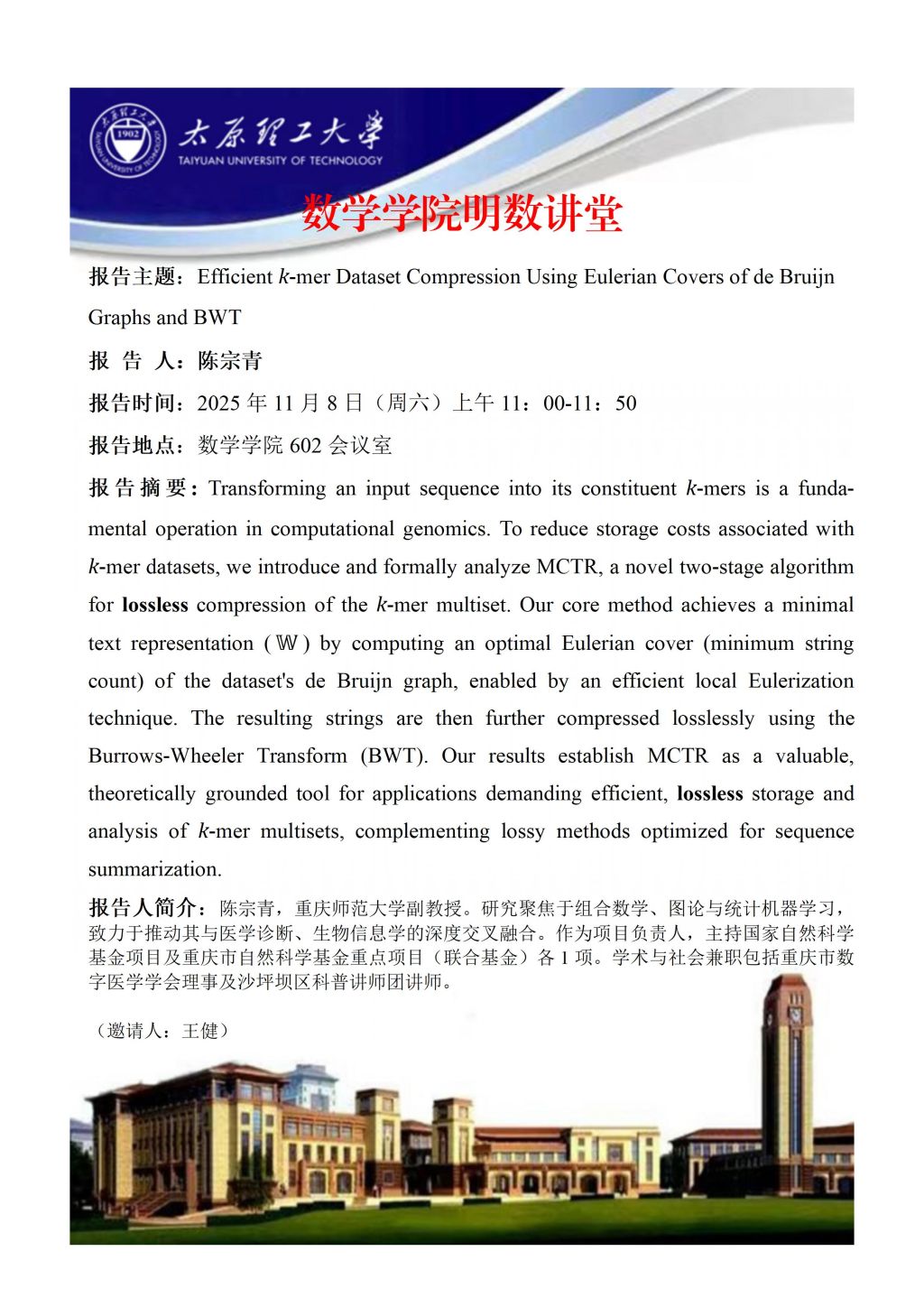 英国365集团公司官网将于11月8日邀请张彪副教授,解红叶副教授,陈宗青副教授做学术报告