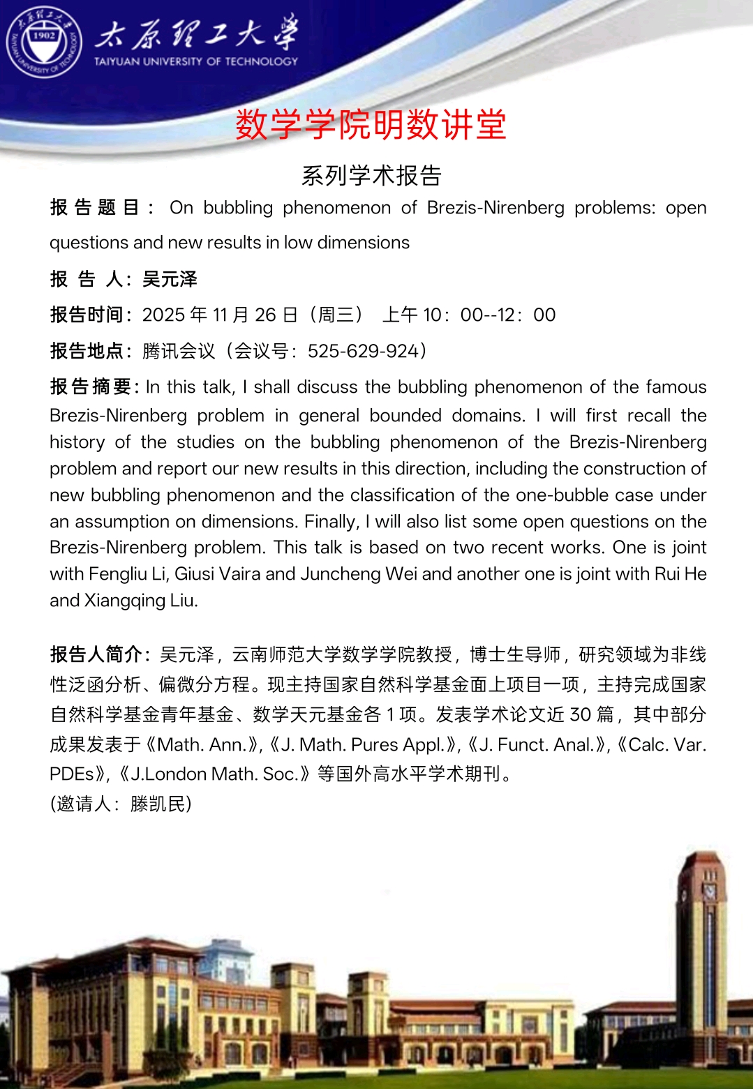 英国365集团公司官网将于11月26日邀请吴元泽教授做学术报告