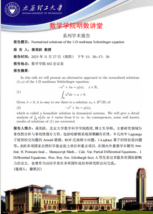 英国365集团公司官网将于11月27日邀请蒋美跃教授做学术报告