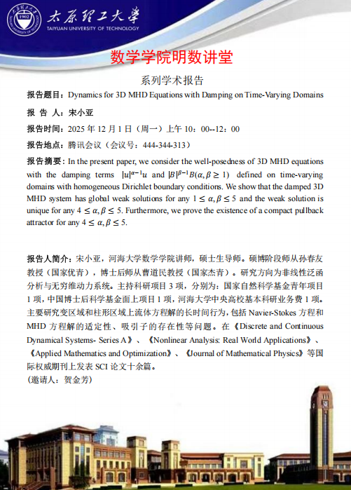 英国365集团公司官网将于12月1日邀请宋小亚做学术报告