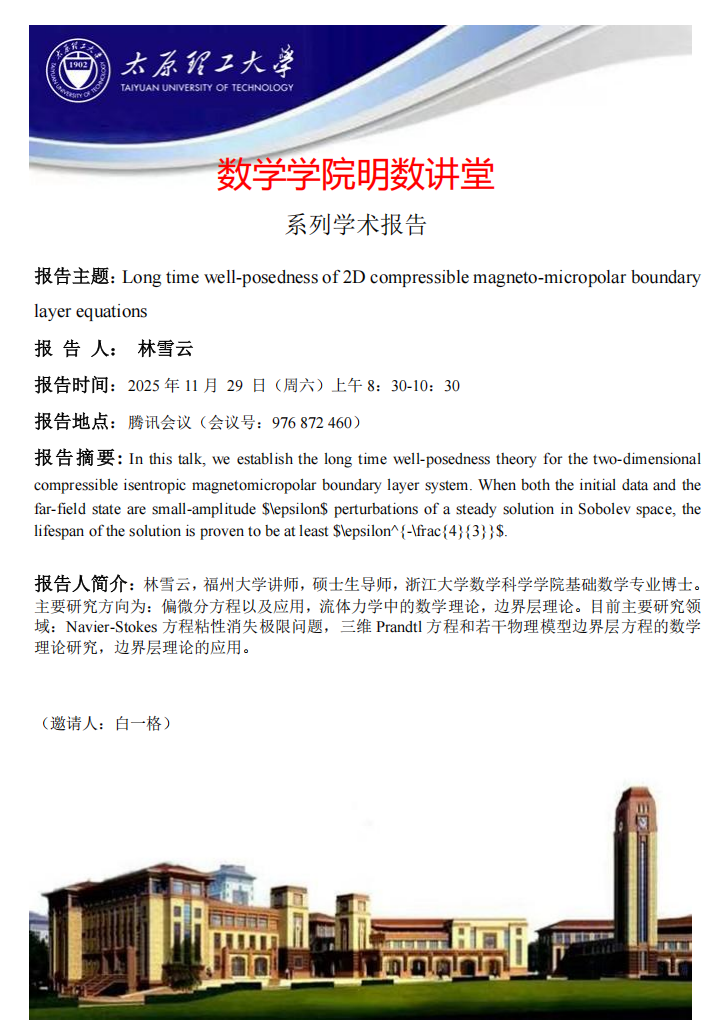 英国365集团公司官网将于11月29日邀请林雪云做学术报告