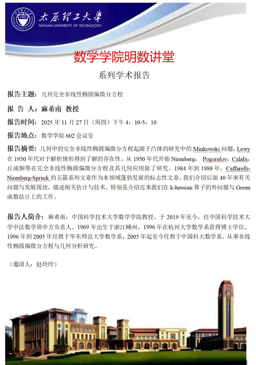 英国365集团公司官网将于11月27日邀请麻希南做学术报告