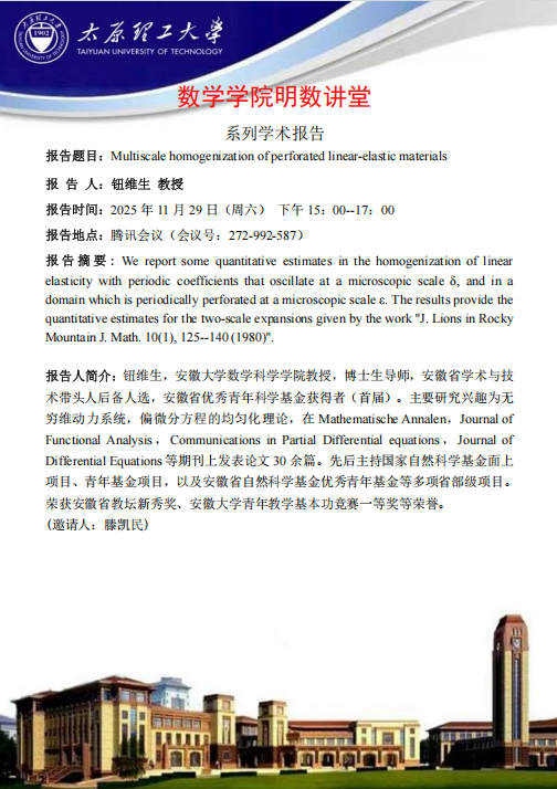 英国365集团公司官网将于11月29日邀请钮维生教师做学术报告
