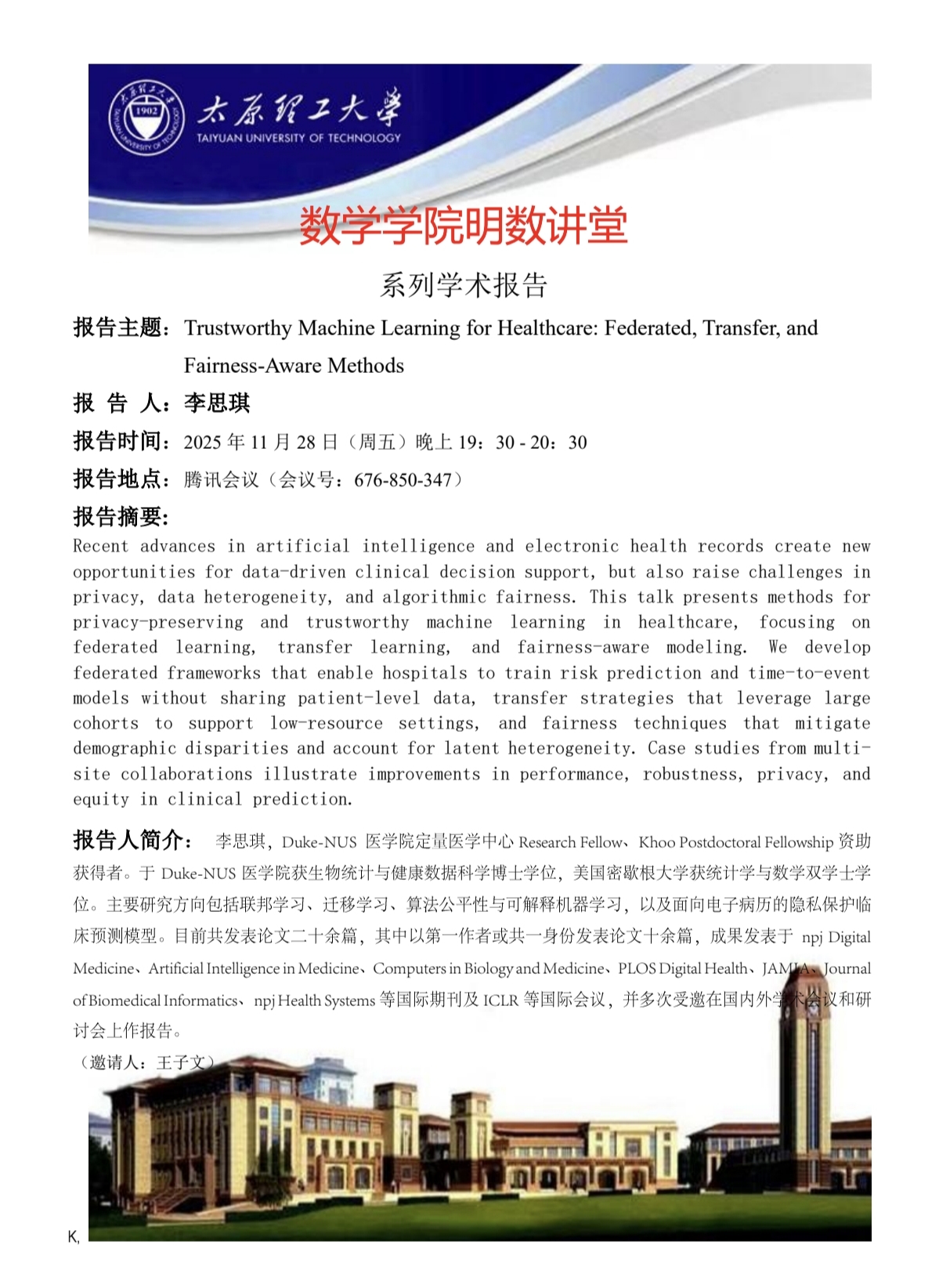 英国365集团公司官网将于11月28日邀请李思琪做学术报告