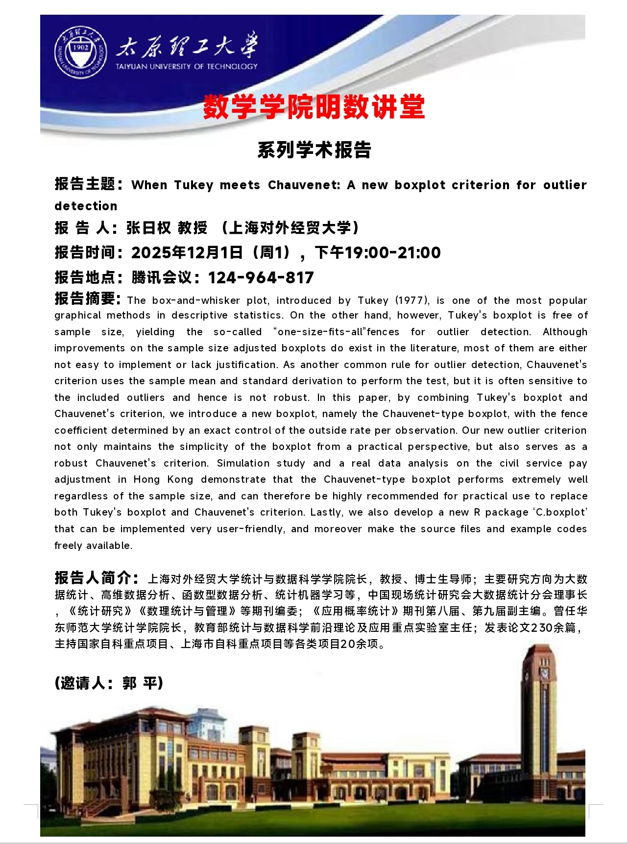 英国365集团公司官网将于12月1日邀请张日权教授做学术报告