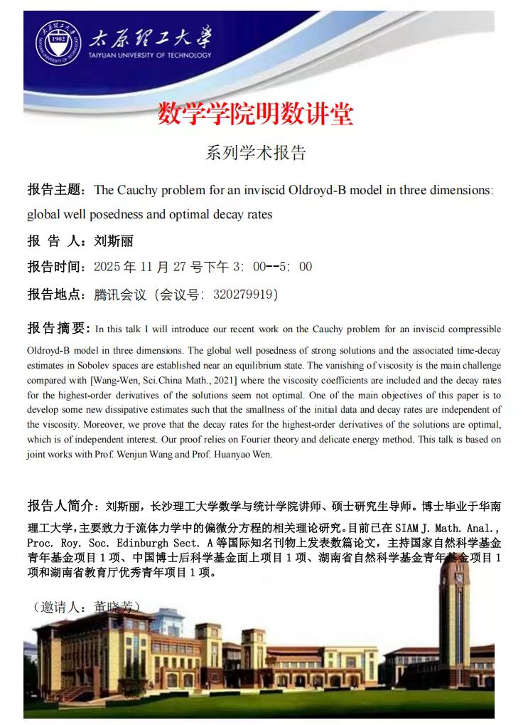 英国365集团公司官网将于2025年11月18日邀请刘斯丽做学术报告