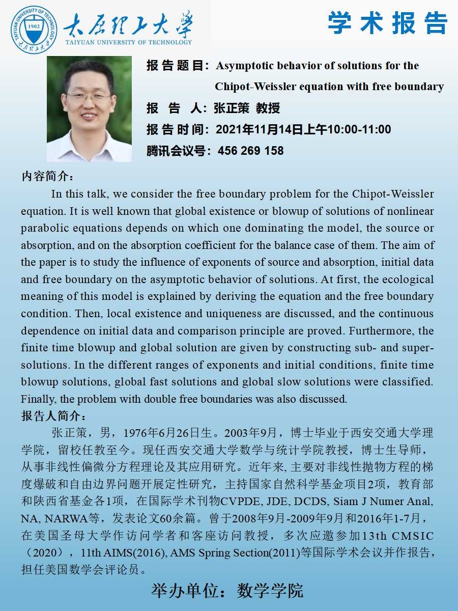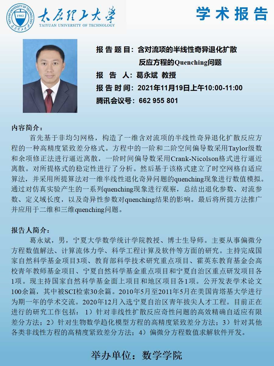 公司邀请西安交通大学张正策教授、郑州大学耿献国教授、宁夏大学葛永斌教授分别于11月14日、17日以及19日在腾讯会议作线上报告,欢迎大家参加!