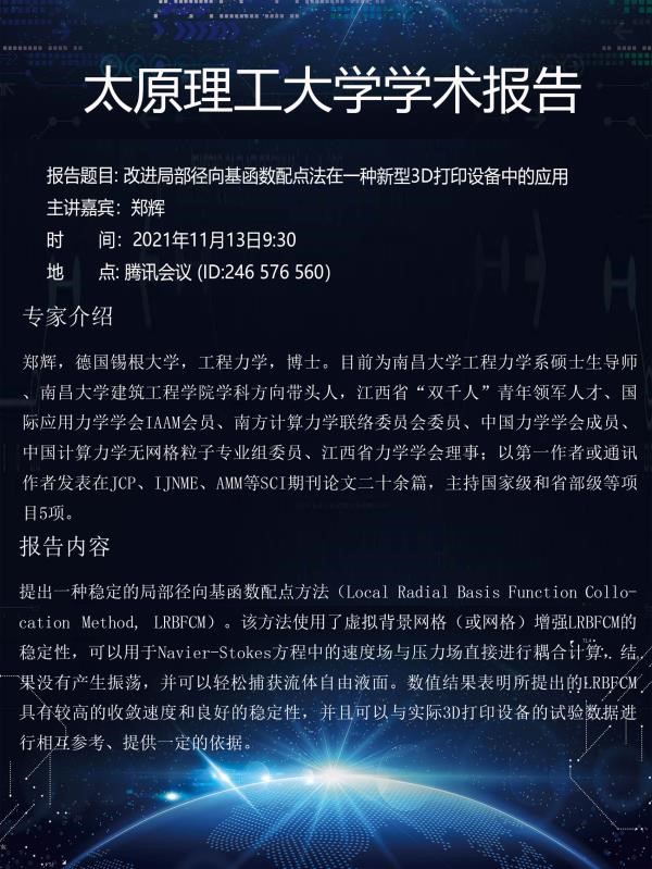 英国365集团公司官网将于11月13日邀请郑辉教授、孙秀婷教授、周立隆工程师作专题报告