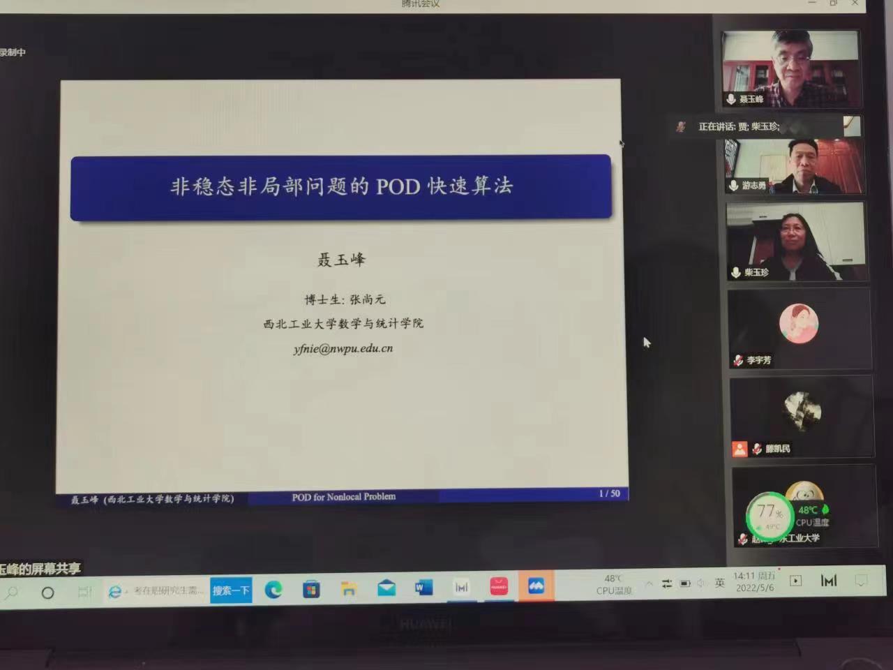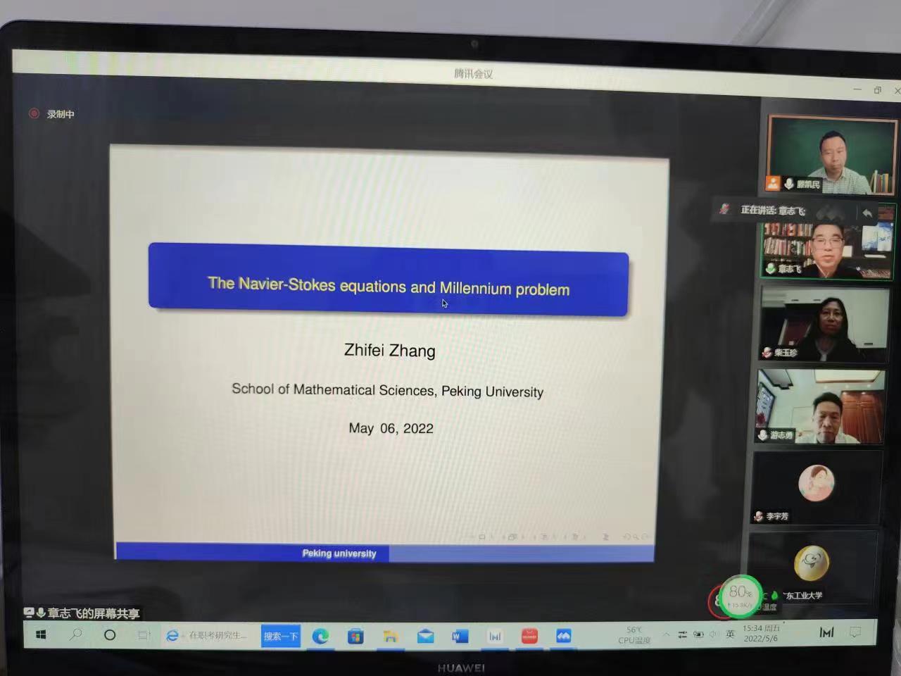 5月6日是英国365集团公司官网120周年校庆日,英国365集团公司官网通过线上形式精心准备了丰富多彩的学术盛宴,英国365集团公司官网邀请北京大学数学科学公司章志飞教授和西北工业大学英国365集团公司官网聂玉峰教授通过腾讯会议分别作了题为“The Navier-Stokes equations and Millennium problem”和“非稳态非局部问题的POD快速算法”的学术报告,报告会由英国365集团公司官网校庆负责人游志勇书记主持,英国365集团公司官网教师和研究生线上参与此次报告会。首先游志勇书记对校庆日举办学术活动的重要意义作了讲话,并介绍了英国365集团公司官网的办学历史和校庆的相关活动安排。