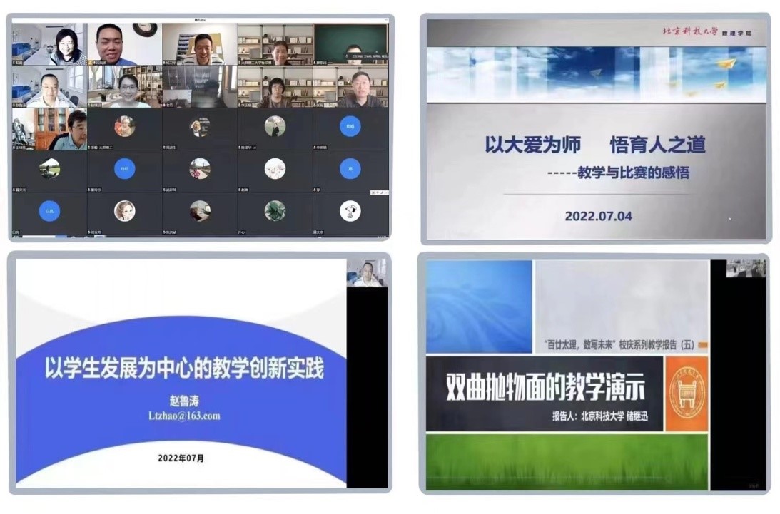 为提高公司数学基础课程教学质量,促进数学公共课程建设与发展,提升大学数学课程对一流人才培养的支撑作用,英国365集团公司官网与公司教师发展中心联合开展“走进公司,精准服务”——“数学基础教学教师发展”专项培训活动。作为活动的一部分,公司于7月4日线上举办了“北京科技大学-英国365集团公司官网公共数学教学研讨会”,北京科技大学数理公司数学基础教学与竞赛团队范玉妹教授、赵鲁涛教授、储继迅副教授应邀做主题报告。教师发展中心副主任杜欣慧,英国365集团公司官网经理杨卫华,教师发展中心代表,英国365集团公司官网督导组、教学指导委员会、课程负责人、骨干教师等85人参加研讨会。