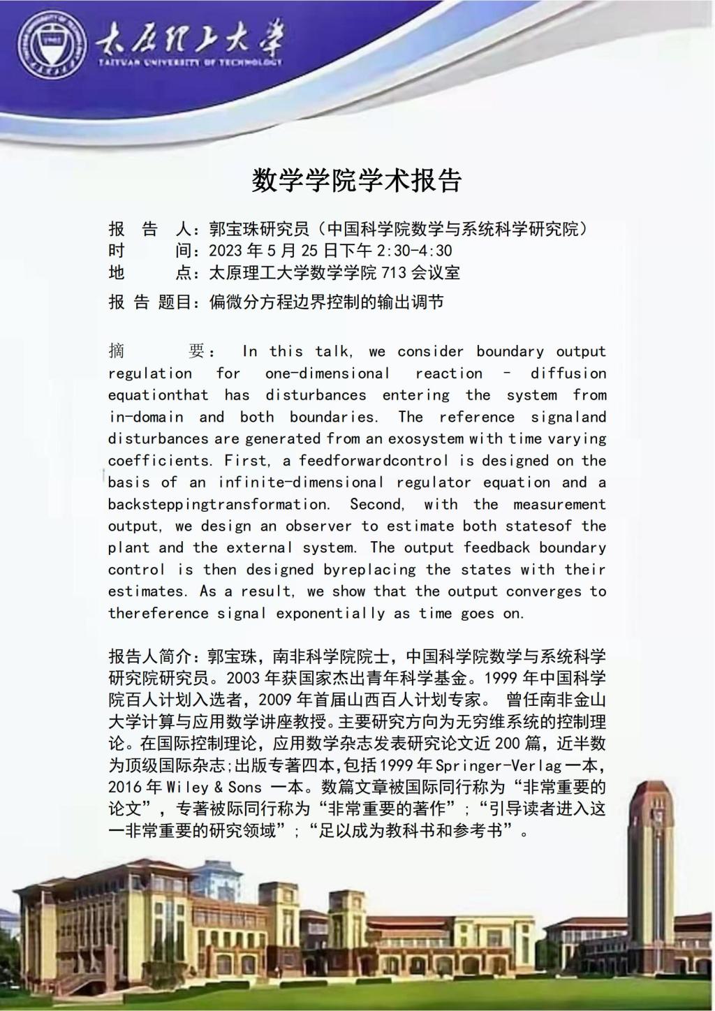 英国365集团公司官网将于5月25日邀请郭宝珠教授做学术报告