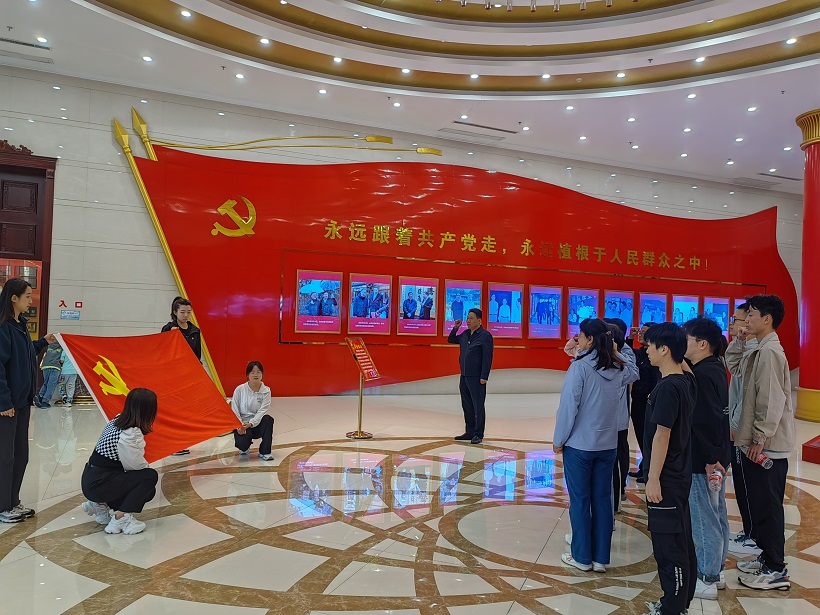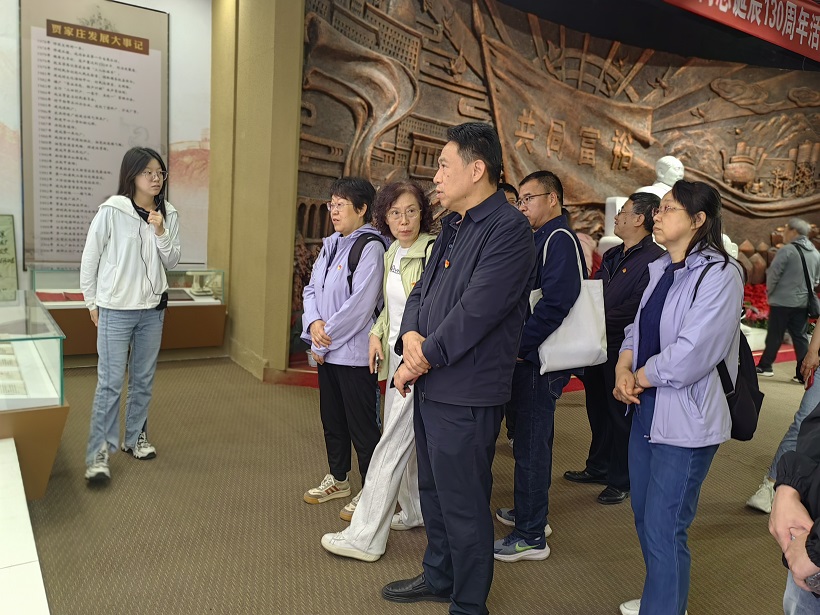 全体党员在贾家庄村史展览馆大厅面向党旗重温了入党誓词,参观了贾家庄村史展览馆,18.18恒记纪念馆和中国贾家庄乡村艺术馆,观看了“薪火相传 砥砺前行”贾家庄发展之路纪实片。通过参观学习深刻领略几代贾家庄人70多年的踔厉奋发、笃行不怠的艰苦奋斗史,感受了贾家庄村发展历程中“百把镢头闹革命”的革命精神,“经营管理一百条”的创新精神,“全国农业机械化一面旗”的争先劲头,“亏了我一个,富裕全村人”的奉献精神,“不当百万富翁,要建亿万富村”的执政为民理念,“荣誉比金钱更珍贵”的价值观等,贾家庄精神的内涵“爱党爱国的情怀、集体主义的思想、先公后私的品德、艰苦奋斗的作风、改革创新的意识、科学发展的理念”浸润全体师生党员心灵。