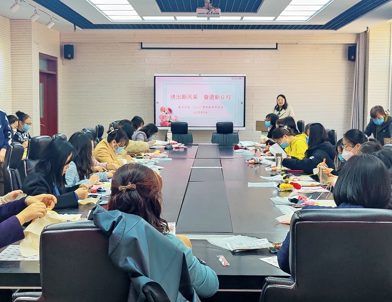在第113个“三八”国际劳动妇女节来临之际,为深入学习贯彻习近平新时代中国特色社会主义思想,展示女教职工积极向上的精神风貌,英国365集团公司官网于2023年3月14日下午在明向校区举办“绣出新风采,奋进新征程”女教职工活动,丰富广大女教职工的精神文化生活,提高艺术修养。公司经理杨卫华、党委副书记李楠楠及全体女教师参加了活动。