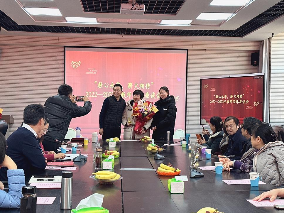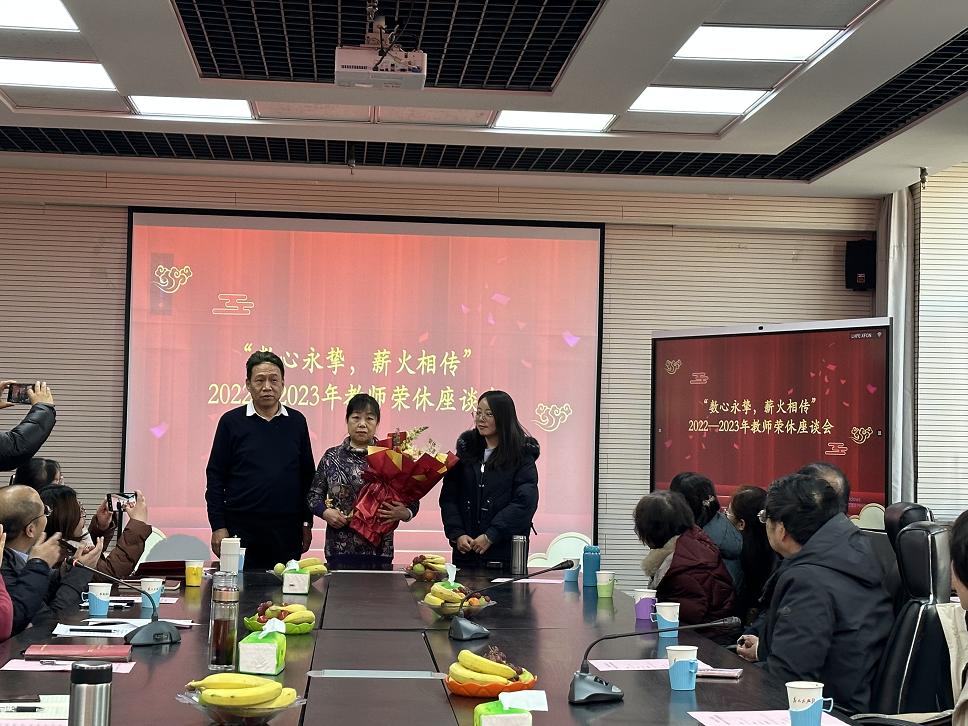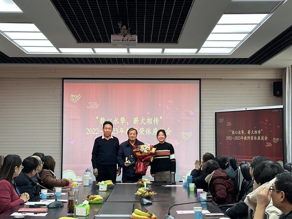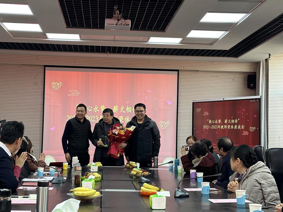 座谈会上气氛热烈,大家畅所欲言。在职老师们也分享了他们和退休教师共事期间的点点滴滴,追忆了他们曾经共同奋斗的幸福时刻,诠释了老一辈教师的爱岗敬业和家国情怀,并祝愿他们开启人生新的篇章,退休时光同样流光溢彩。