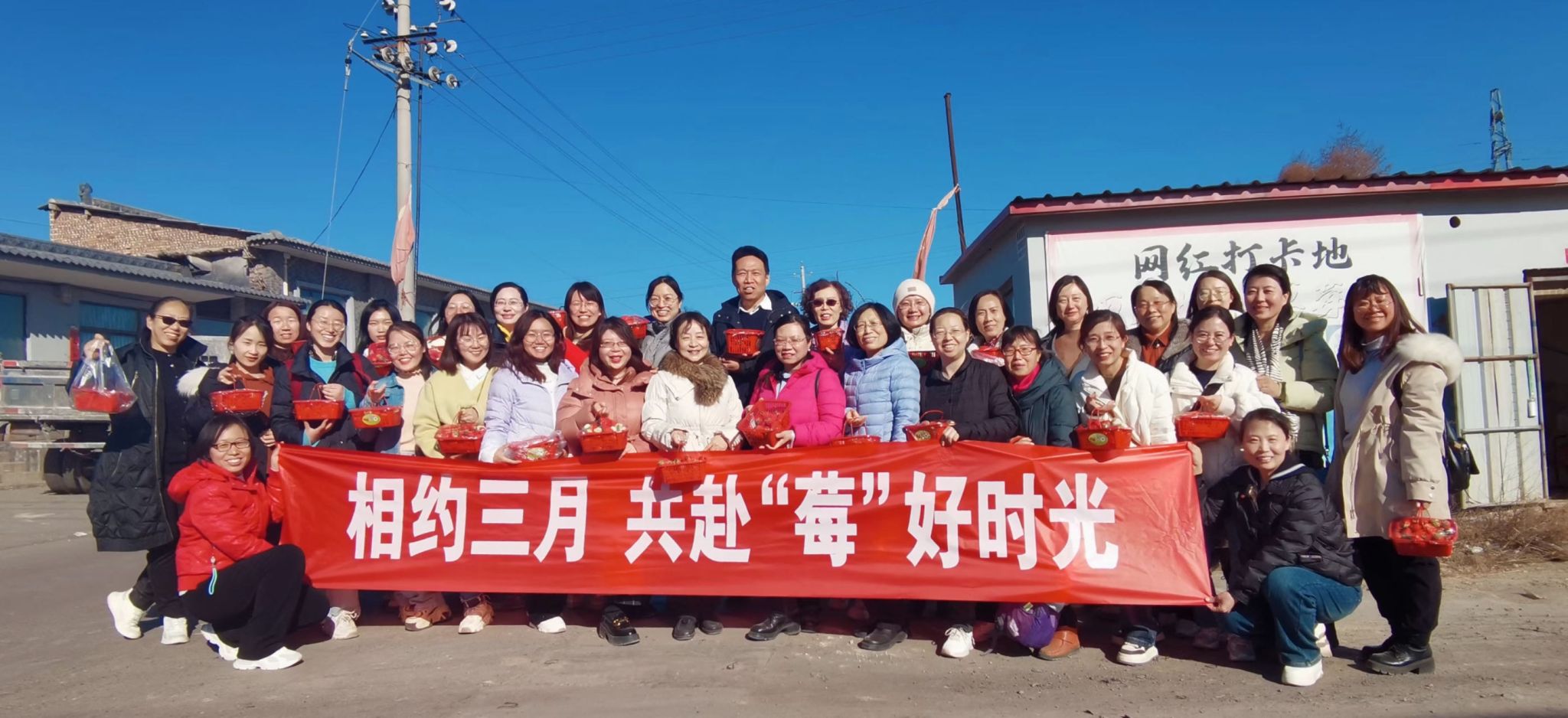 春日融融,和风阵阵,在第114个国际劳动妇女节来临之际,3 月8 日下午,英国365集团公司官网举办“相约三月,共赴“莓”好时光”活动庆祝三八国际劳动妇女节,为公司全体女教职工们组织了一场户外采摘草莓活动。数学公司党委书记游志勇和副经理柴玉珍参加了本次活动。