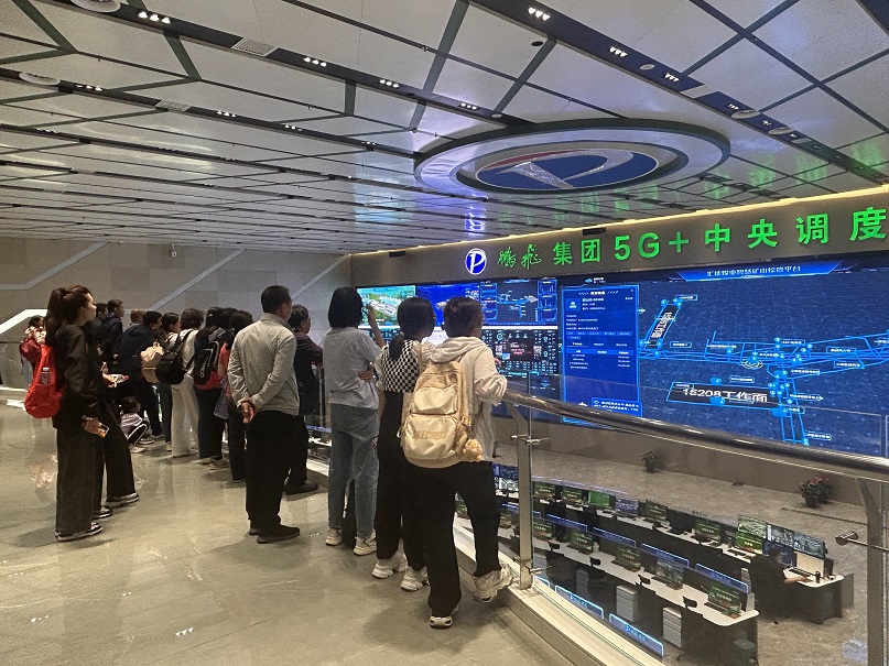 在山西鹏飞集团有限公司,全体师生在5G+中央调度指挥管理中⼼进行了观摩,在总部党建智慧展厅进行参观,之后换乘氢能⼤巴赴鹏⻜焦化⼚,鹏⻜甲醇制氢热源⼚、鹏湾氢港集控中心、城市加氢综合能源岛观摩学习。老师们见识到鹏飞集团贯彻新发展理念,坚持红色引领,创新驱动,绿色发展,在智慧安全、智慧环保、智慧矿山、智慧工厂、智慧巡检、智慧经营等方面实现了人员优化、安全智能、低碳环保、降本增效。