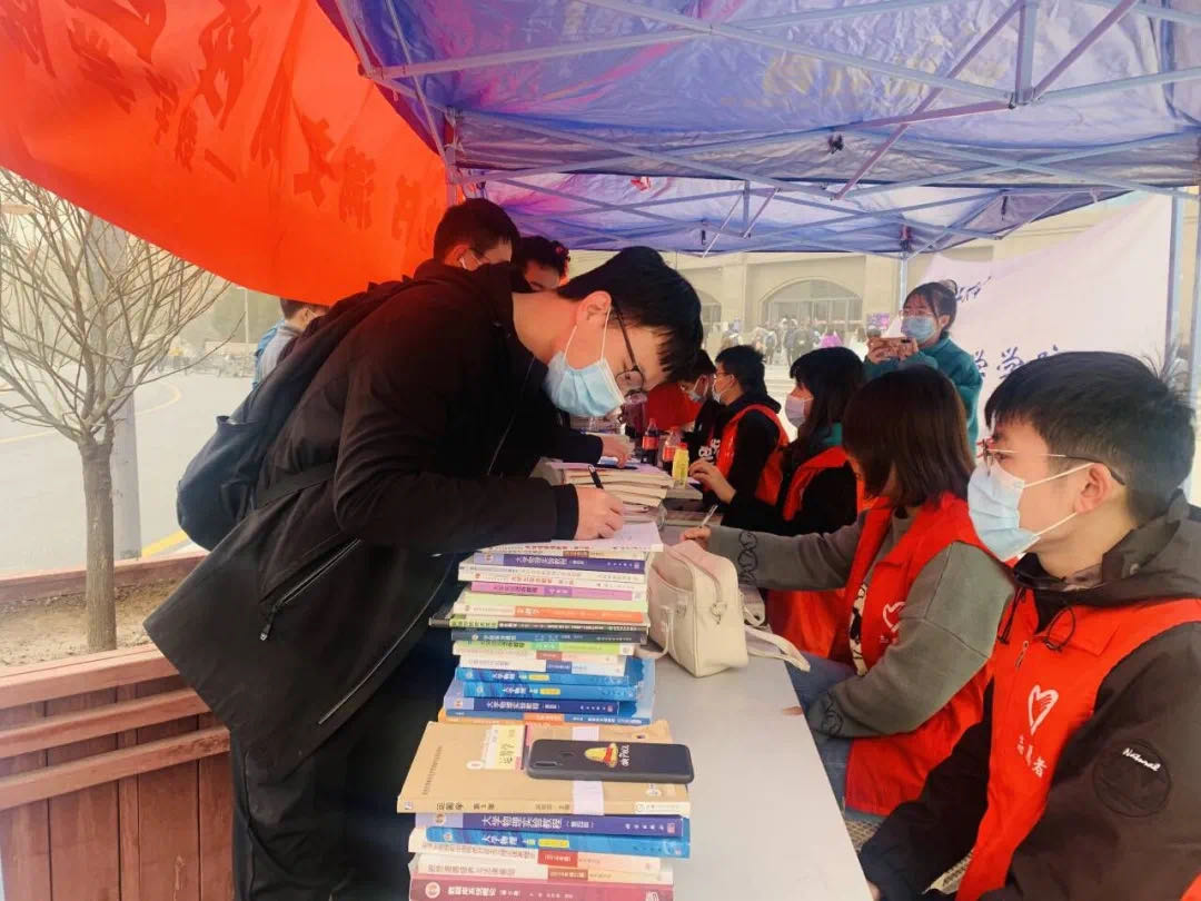捐书活动现场,志愿者热情如火,现场气氛暖如春夏,大家争相捐赠。同学们纷纷拿出自己目前闲置的专业课书籍和考研书籍,有的同学捐赠的书籍多到需要用行李箱来运送;有的同学积极捐赠却不愿留下姓名;有的毕业生主动分享出自己的专业课笔记以及考研书籍。为期一天的活动,参与捐赠人数近100人次,收到捐赠书籍共计486本。捐赠者张玉波表示:“这些书籍一部分是学长学姐送给我的,承载着学长学姐对我的祝福与希望,一部分是自己大学四年积累下来的。现在我把这些书籍捐给青悦书屋,将祝福、希望与爱心继续传递下去,让更多学子受益”。现场的志愿者们深受感染,认真登记好每一本书,并将捐助的书籍分类,妥善保管。捐书结束后,志愿者们主动来到“青悦书屋”,逐一将书籍编号归纳,交付青悦志愿者中心管理。