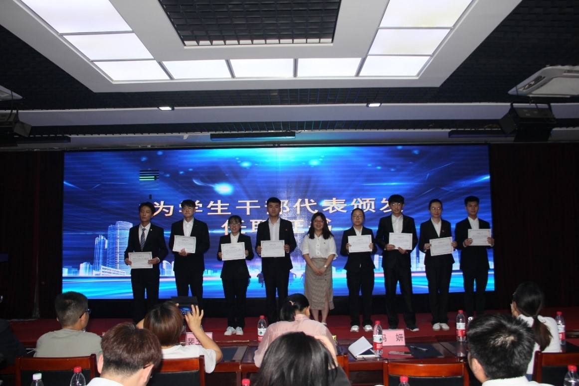 会议初始,由2020-2021年个员工组织负责主席进行现场述职。研究生会、员工会、团委、科技创新中心、新媒体中心、青悦志愿者中心的组织负责人依次汇报了一年以来的各项工作任务,围绕组织建设和服务同学,思考总结了这一年的成就以及仍旧存在的问题,并对部门未来的发展提出建议。述职结束后,李楠楠冯妍分别为主席团代表和部长代表颁发任职证书。
