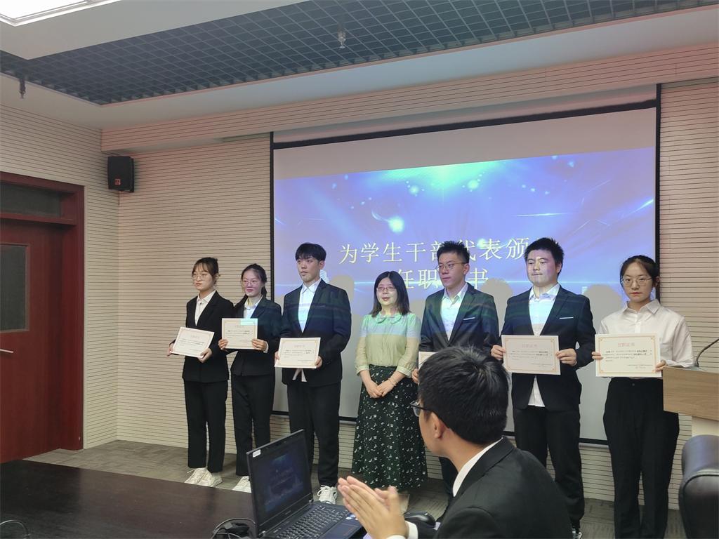 会议初始,李楠楠为大会致辞,李楠楠指出,不做青年官,只做青年友,拒绝做躺平式的员工干部,书记的殷殷嘱托让在场的员工干部醍醐灌顶。接着,李楠楠和冯妍分别为主席团代表和部长代表颁发任职证书。随后由2021-2022年员工组织负责主席进行现场述职。研究生会、员工会、团委、新媒体中心、科技创新中心、青悦志愿者中心的组织负责人依次汇报了一年以来的各项工作任务,围绕组织建设和服务同学,思考总结了这一年的成就以及仍旧存在的问题,并对部门未来的发展提出建议,对即将接任的下一任主席表达期望。