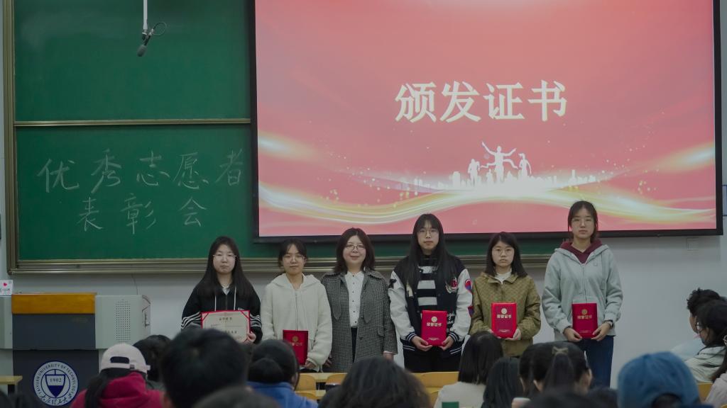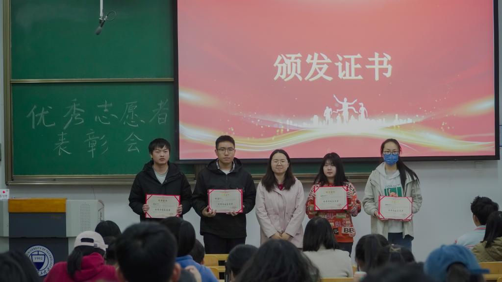 表彰会最后,李楠楠、冯妍、张欢分别为“志愿之星”“优秀防疫志愿者”颁发证书并合影留念,老师们对获奖优秀志愿者表示祝贺并鼓励同学们积极投身志愿服务活动,对同学们提出了新的期待和要求,激励大家再接再厉。