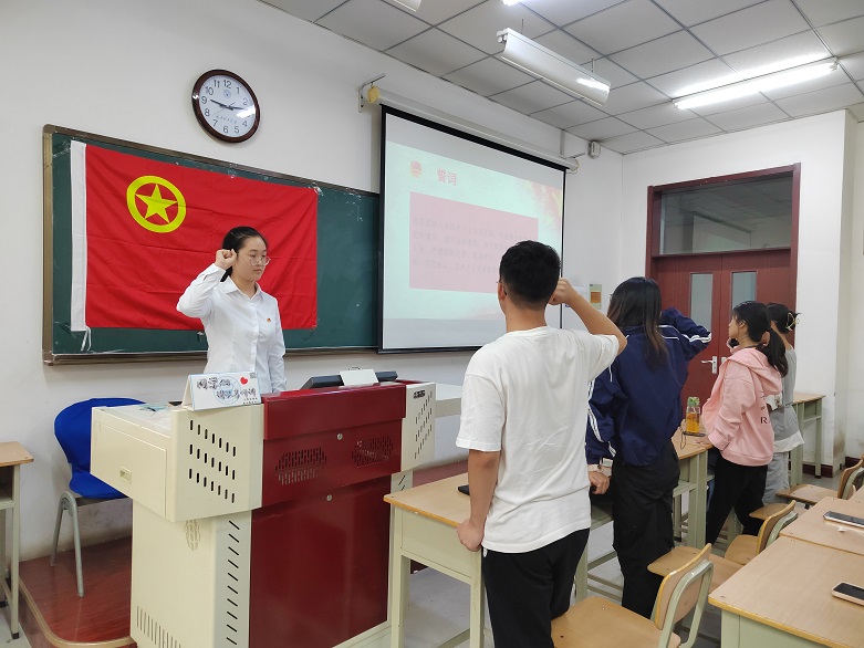 在团日活动中,团支书以团代会为切入点,利用PPT,结合相关视频,并采取你问我答的方式,从“认识共青团”“讲述共青团”“共青团的使命”三个方面开展活动。活动中,支部团员发言积极,活动氛围热烈。尤其在“讲述共青团”的环节,四位优秀团员结合个人经历,分享了他们与共青团之间的故事,引发了支部团员们强烈的共鸣,让支部团员们对于共青团的使命担当有了更为深刻的理解与体会。活动的最后,信计2202团支部全体成员重温入团誓词,铭记团的承诺,立志听党话、跟党走,做一名理想远大、信念坚定的新时代共青团员。