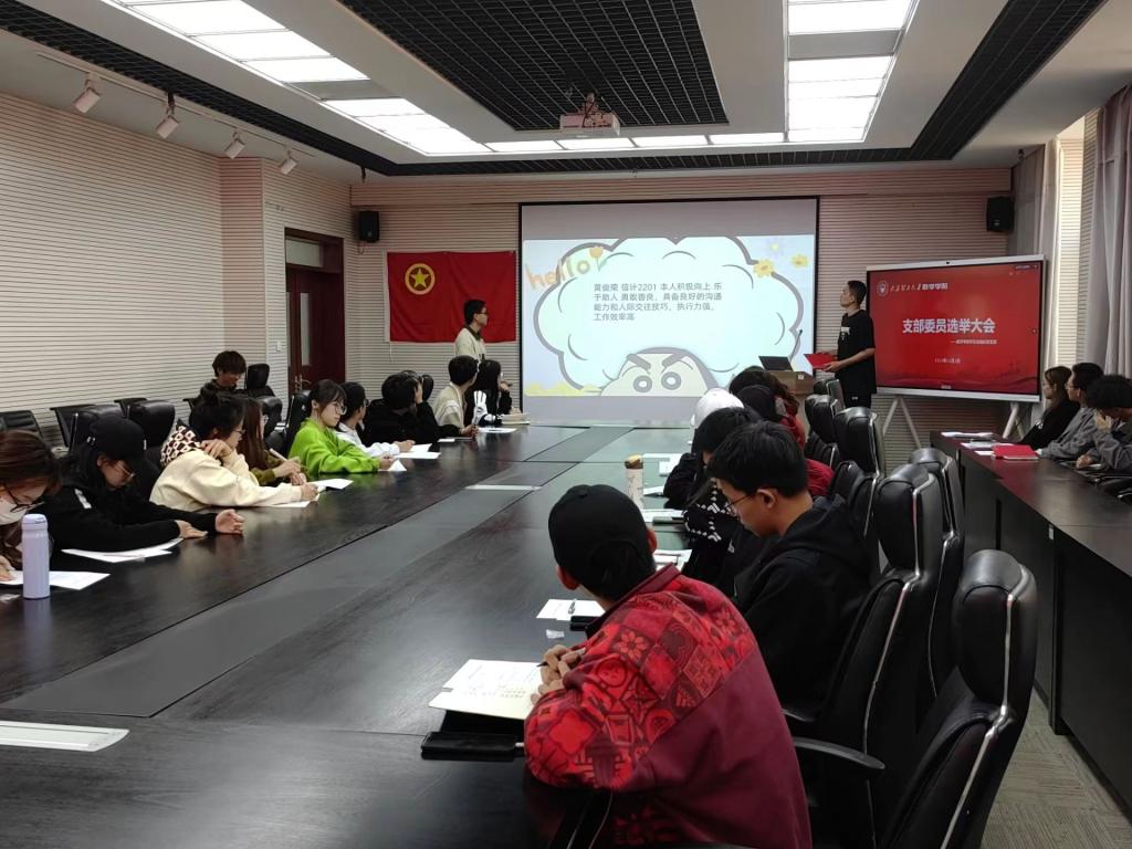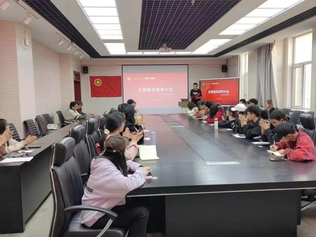 会议第二项,选举产生员工会临时团支部委员会。主持人宣读选举方法,候选人依次上台从个人情况、自身优势及工作展望等方面进行发言。通过民主投票选举产生员工会临时团支部委员会,最终由张晋铭担任团支部书记,谷宇欣担任组织委员,唐子腾担任宣传委员,黄俊荣担任纪律委员。