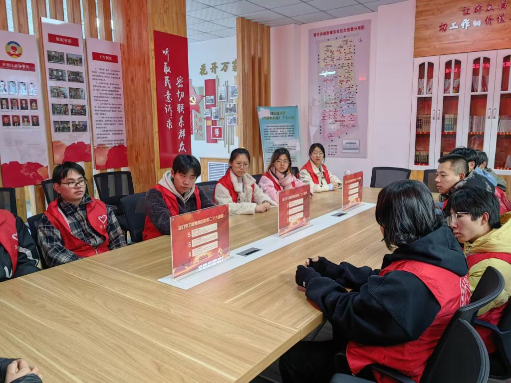 抵达社区并会合后,团支部成员在晋华街道新建东社区居民委员会党支部书记高翠玲的带领下,集中学习习近平总书记《论党的青年工作》及习近平新时代中国特色社会主义思想,进一步感悟习近平总书记对当代青年的殷殷嘱托,明确新时代青年的使命担当,坚定听党话、跟党走的信念。