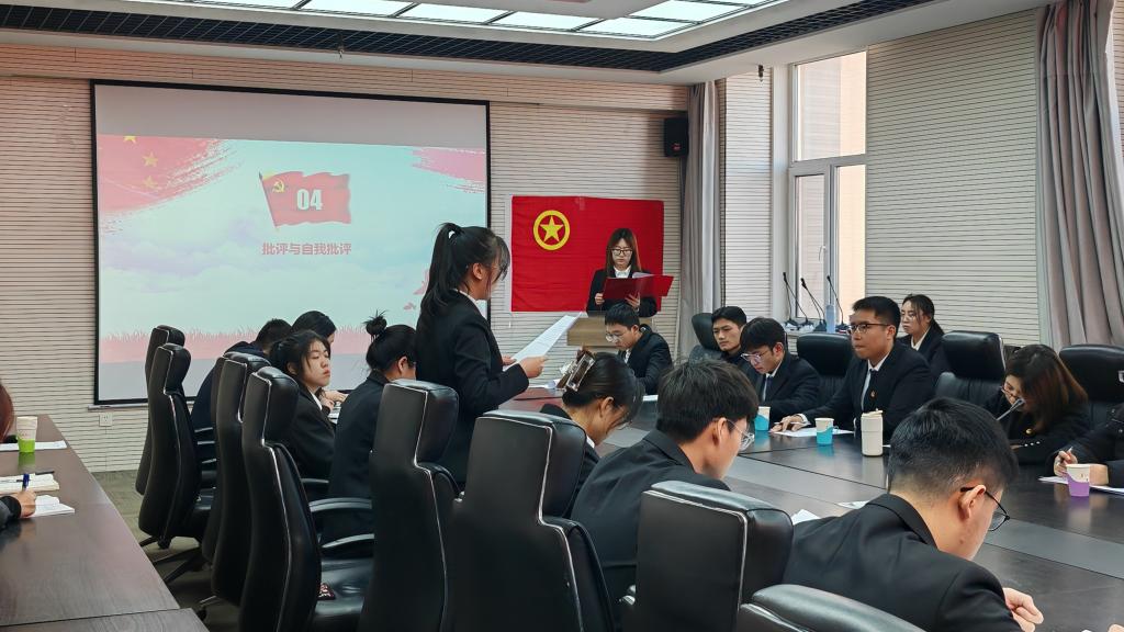 在组织生活会开始之前,团支部团员与青年们通过自主学习、聆听有声书等形式,认真学习了习近平总书记的相关著作,做了充分准备。伴随着《光荣啊,中国共青团》的旋律响起,本次组织生活会正式拉开帷幕。