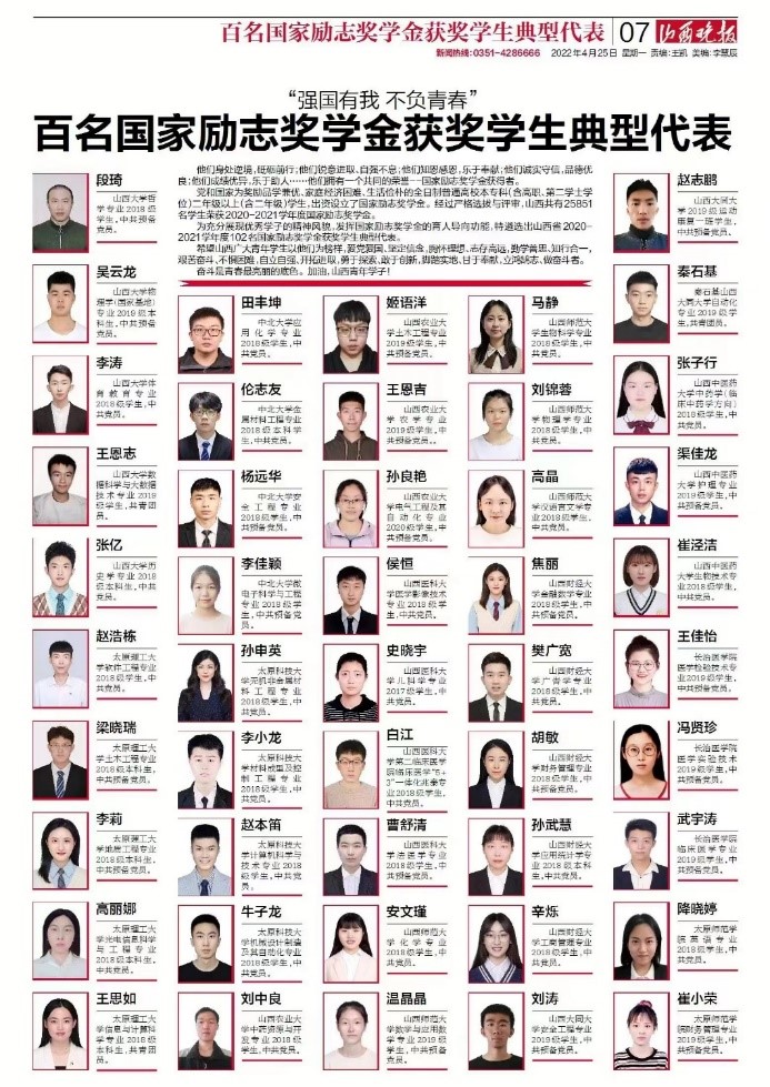 公司学子王思如成功入选2020-2021学年山西百名国家励志奖学金获奖员工典型代表名录。