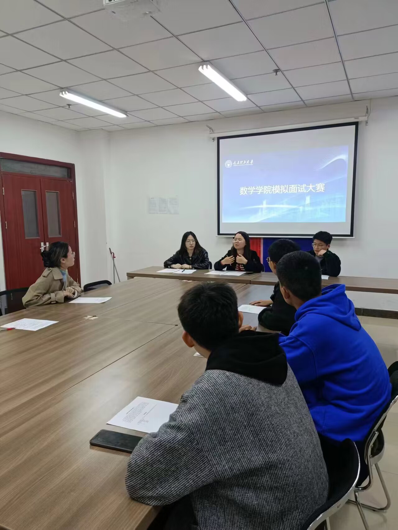 为提高员工就业能力,公司于4月6日晚在数学楼304会议室组织开展面试模拟大赛选拔赛。公司辅导员张欢、付坤,保资生魏俣霏担任评委,同学们也踊跃报名参赛。