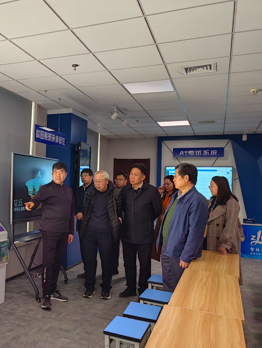 随后,员工叶希杰带领大家参观了母公司智林信息技术股份有限公司展览厅,介绍了智林信息技术股份有限公司的系列产品,包括仿真教学系统、AI考试系统、智慧校园建设、数字技术专业产品等。出席活动老师围绕智能化考试系统、双师型教师能力发展数据中心等内容进行交流。