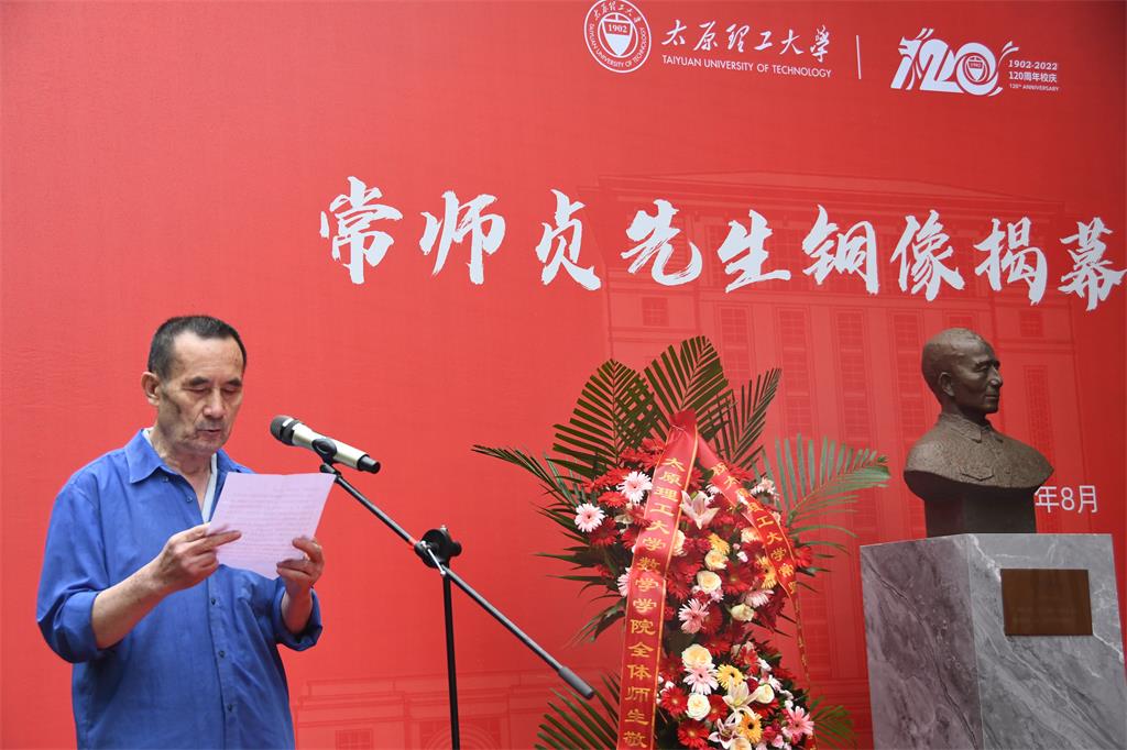 78级员工、常师贞先生员工、原山西省住房和城乡建设厅副厅长顼连斌在发言中讲到,常先生是一位德高望重、慈祥、和蔼、谦虚的老师,他影响了几代员工,培养了众多优秀学子,希望母院能够以铜像树立为契机,进一步学习和传承常先生为人为师的精神品质,培养更多优秀的数学教师和数学人才,推动公司高水平创新发展。